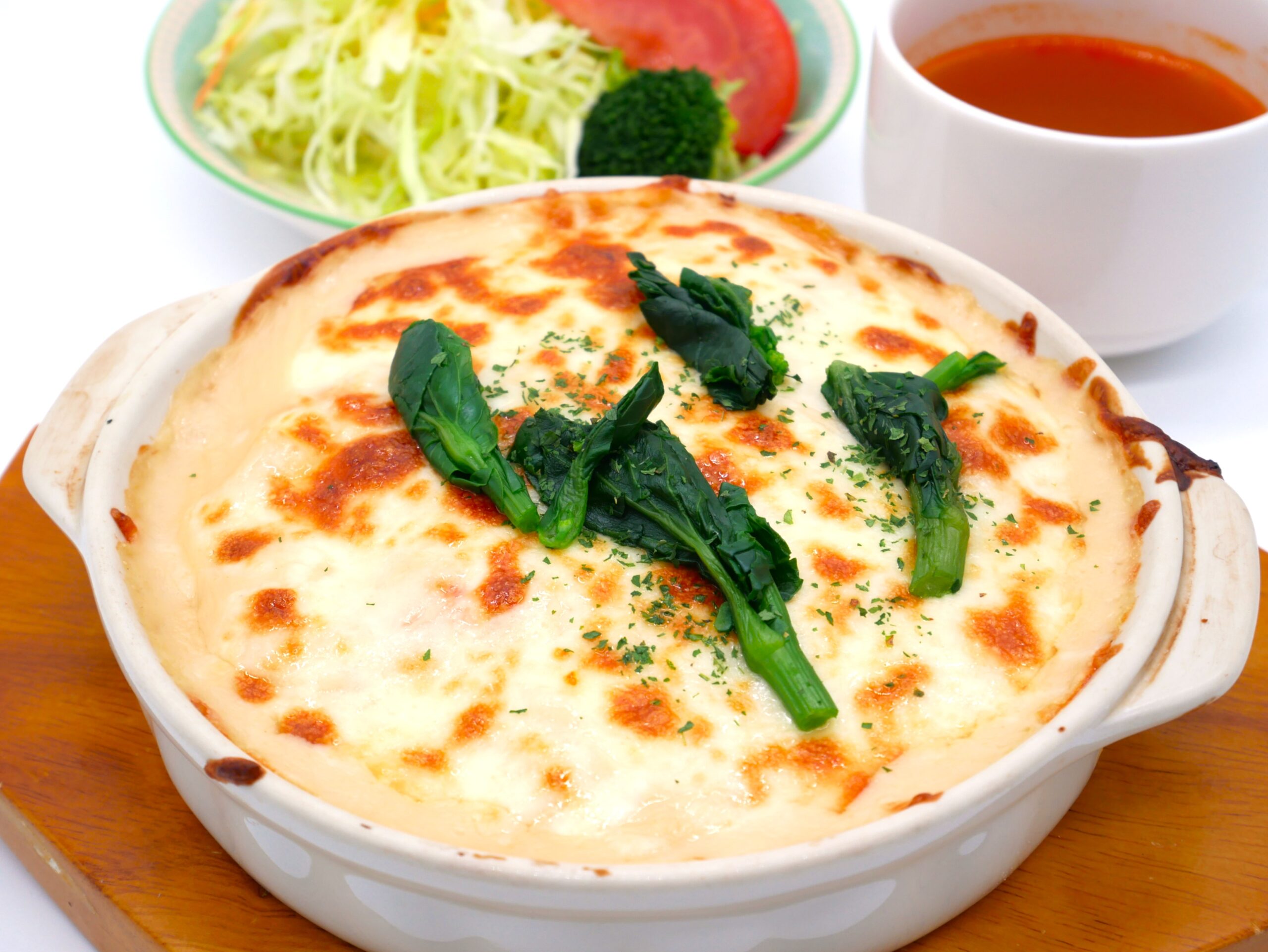 春らしく筍やなばなと エビやイカなどのシーフードが入った 具だくさんのドリアです。